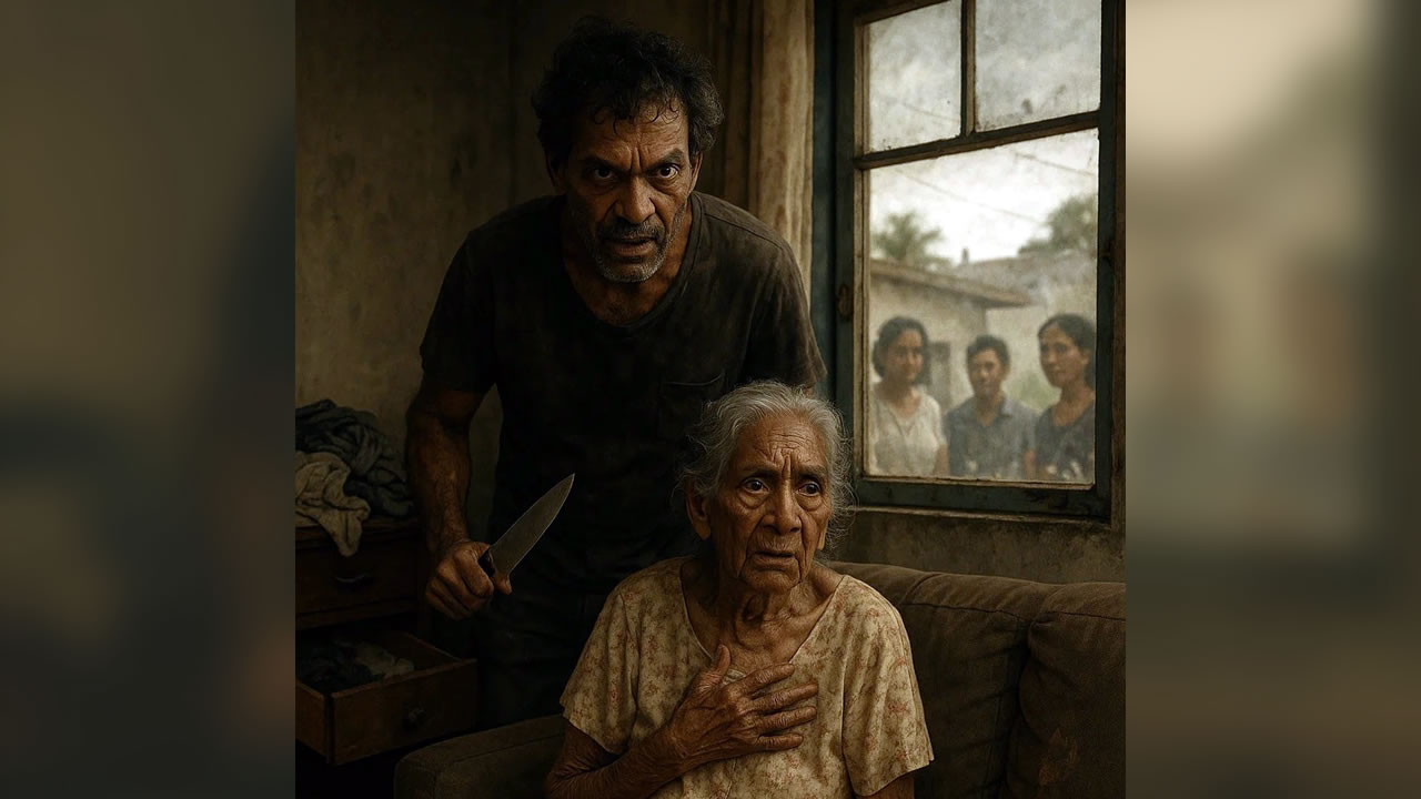 Il brandit un couteau, exige Rs 10 000, hurle, tremble, insulte. Aisha refuse. Sous le choc, elle est prise d’un malaise et s’évanouit, s’écroulant sur le sol. Dans sa chute, elle se cogne violemment le front et se fait une bosse. Son petit-fils, dans un geste qui tient plus de l'opportunisme que de la compassion, la soulève, l’installe sur un canapé et tente de la réanimer... non pas pour vérifier son état de santé, mais pour continuer à lui extorquer de l’argent. « Mo finn kontinie ferm mo lizie, li ti pe bouz mwa pou fer mwa leve. Mo kone li pa ti pou ale tan li pa gagn larzan », raconte Aisha.