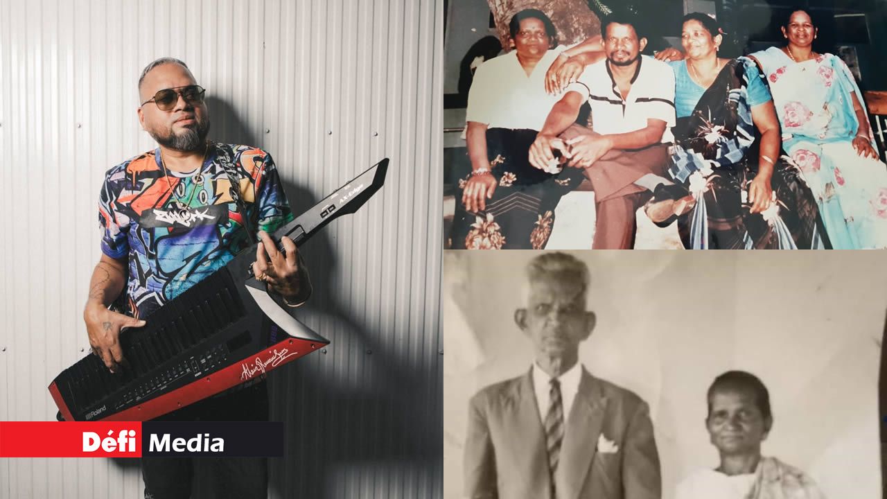 Alain Ramanisum tient son disque d’or aux côtés de ses parents Thérèse et Pierre Ramanisum. « Ma maman appréciait la musique. Mo ti touletan kole ar li. Elle prenait toujours soin de moi », dit-il. Thérèse Ramanisum a tiré sa révérence en juin 2021.