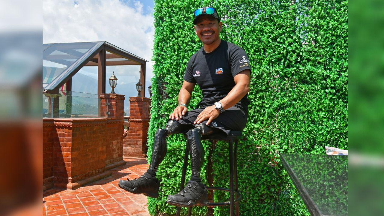Il expérimente le parachutisme, le kayak et le ski. "Cela m'a ouvert l'esprit et j'ai tout essayé", dit-il. Bientôt, il pourrait devenir le premier amputé au-dessus des genoux à se hisser sur "le Toit du monde" à 8.849 mètres.