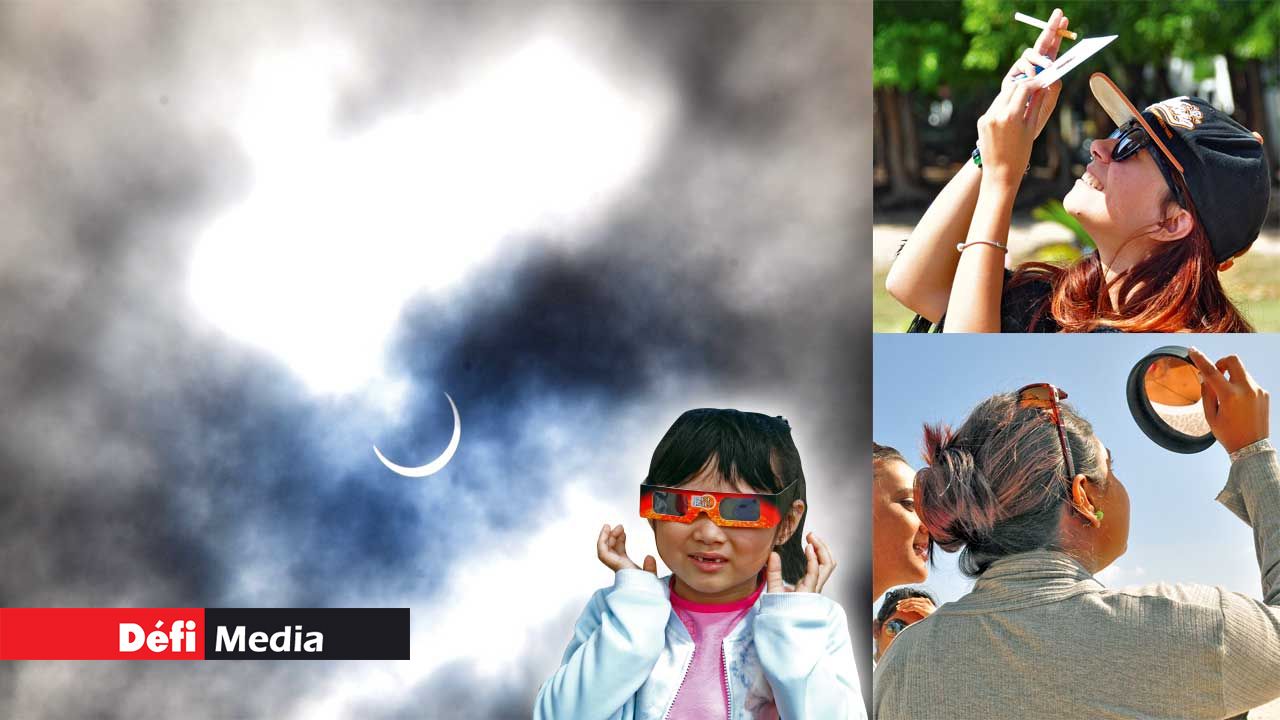 Mauritians around the island were thrilled to observe the spectacular phenomenon of the annular solar eclipse this Thursday September 1. A rare phenomenon happening in the island after 115 years, the eclipse was visible between 12h27 and 15h44. The three-hour show gathered young and old as well eminent personalities at the Rajiv Gandhi Science Centre.