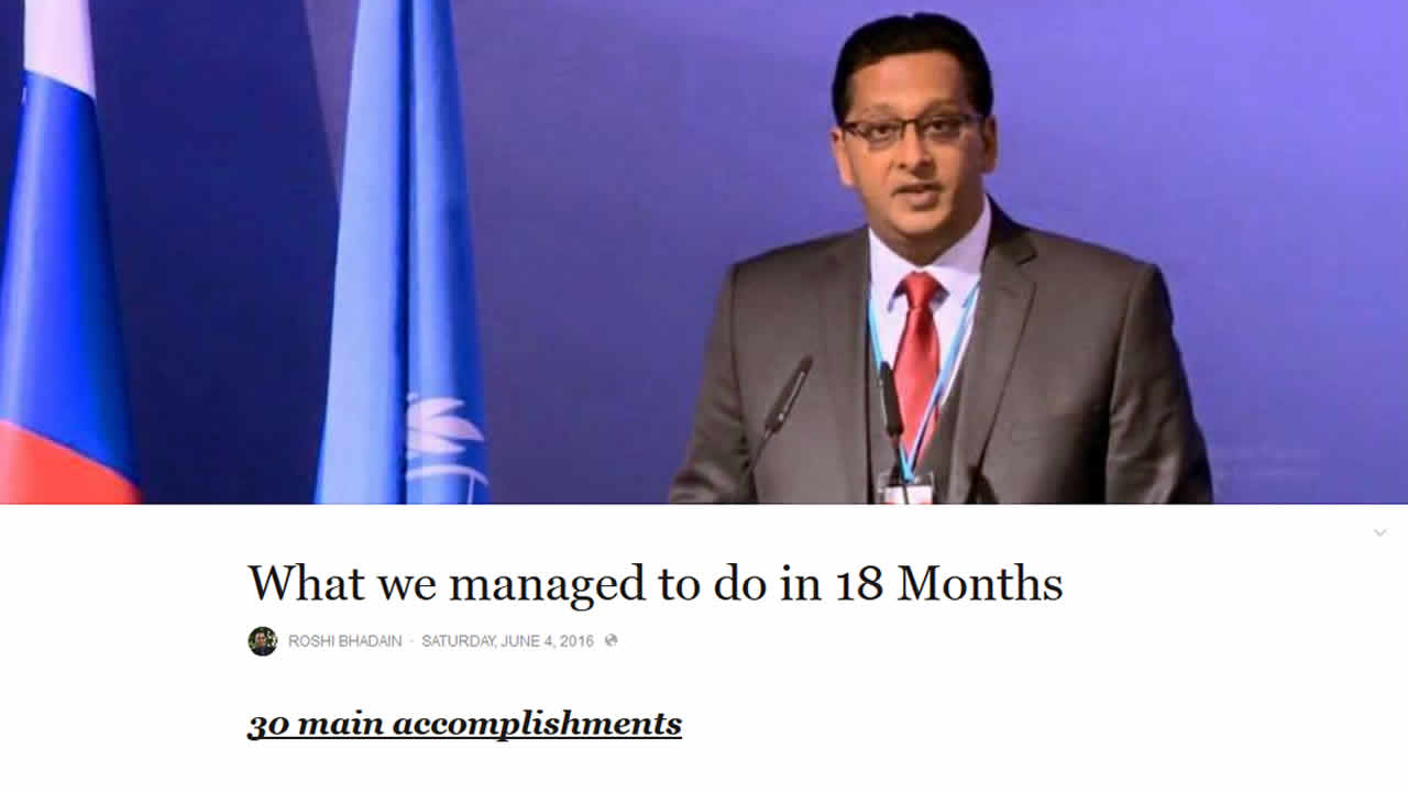 un communiqué intitulé « What we managed to do in 18 months ». Il souligne que son ministère a été créé en décembre 2014. Et que depuis, il y a 30 grandes réalisations.