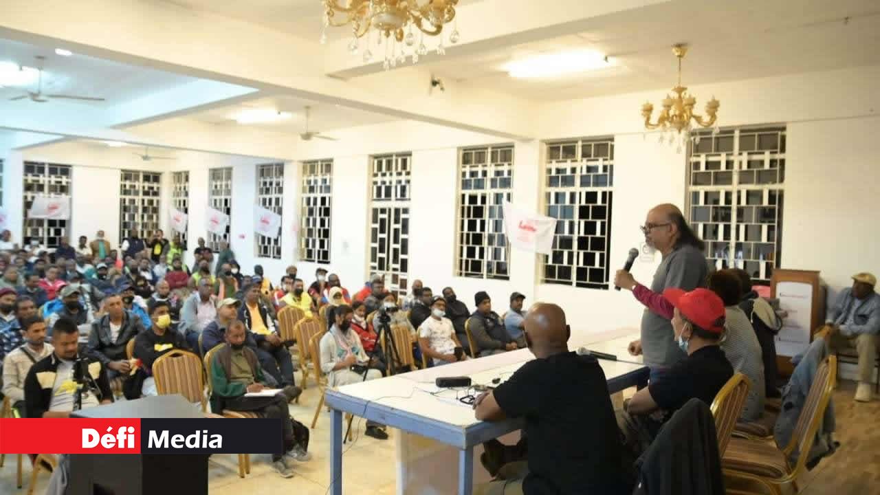 C’est à bras levés que la salle a voté cette démarche. Un « oui » unanime a été prononcé par les travailleurs, hommes et femmes, encore en uniforme, revenant de leur journée de travail. « Je veux que tous les employés de toutes les compagnies de transport, et pas seulement la CNT, obtiennent Rs 1 000 sur leur salaire de base, ainsi que des primes et des protections. Ce sont des frontliners, ils mettent leur vie en danger pour les travailleurs, alors qu’ils sont eux-mêmes des travailleurs. Pourquoi ne pas leur payer les Rs 15 000 comme les autres frontliners, ils ont travaillé eux aussi durant les confinements », déclare Ashok Subron.