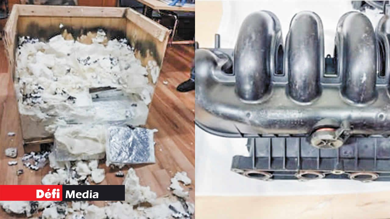 Ils ont rapidement constaté que le document détaillant son contenu était erroné. En vérité, il contenait des manifolds pour voitures de la marque Volkswagen. Avec l’aide de la Customs Anti-Narcotics Section menée par le Team Leader Baichoo, ils ont passé au crible ces pièces de rechange. C’est ainsi que la police a découvert, dissimulés dans les différents compartiments, 29 paquets compressés bourrés de cannabis, notamment du « skunk » ou encore du « laké sat », qualifié comme du cannabis de premier grade. La drogue, pesant 29,95 kilos, a une valeur marchande de Rs 74,88 millions.