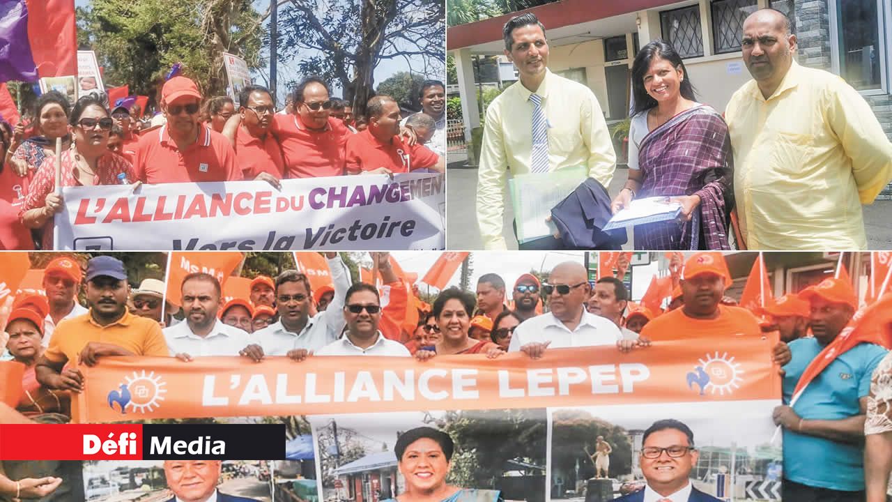 Les candidats de l’Alliance Lepep ont été les premiers des deux principaux blocs à se regrouper avec leurs sympathisants à Piton pour se diriger au centre social pour faire acte de candidature. Ravi Yerrigadoo, Leela Devi Dookhun Luchoomun et Mahen Jhugroo, sous les sons de tambours, alors que d’autres supporteurs, brandissant des pavillons du MSM, avançaient en scandant : « 1, 2, 3 zero pisso ». Avec le sourire, ils ont pénétré dans la cour du centre social pour s’enregistrer.