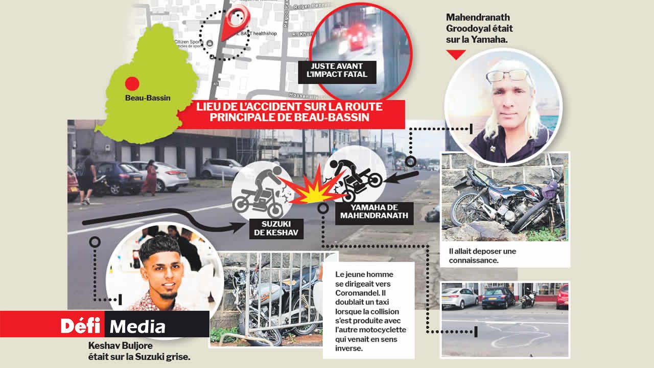 La série noire sur nos routes se poursuit. Dans la nuit de jeudi à vendredi, une violente collision entre deux motocyclettes, sur la route principale de Beau-Bassin, a coûté la vie à Keshav Buljore, 25 ans, et Mahendranath Groodoyal, 49 ans, plongeant leurs familles dans une immense détresse.