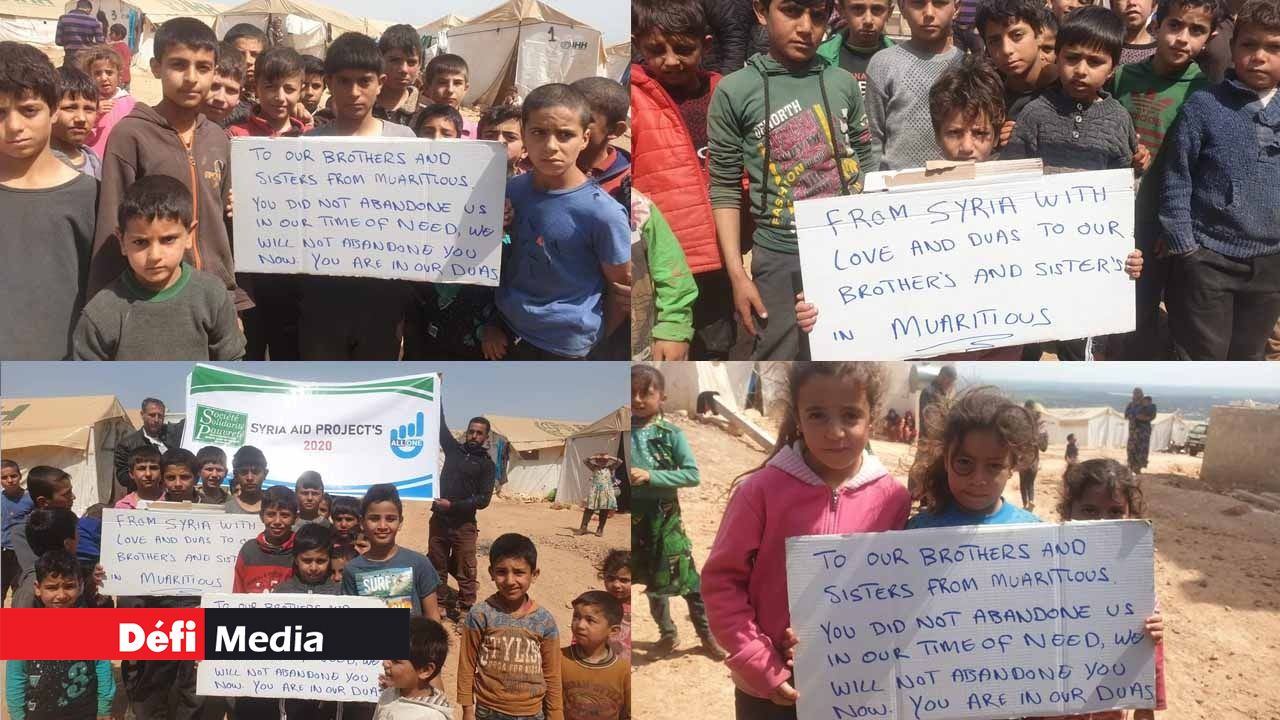 A plusieurs reprises, le responsable de cette ONG, Abdool Nasser Hosenally, avait fait acheminer des denrées alimentaires au peuple syrien rongé par une guerre civile. Dès l'annonce mardi soir du «complete lockdown», des enfants syriens ont envoyé des messages de solidarité aux Mauriciens. Un geste qui a touché bon nombre sur les réseaux sociaux.