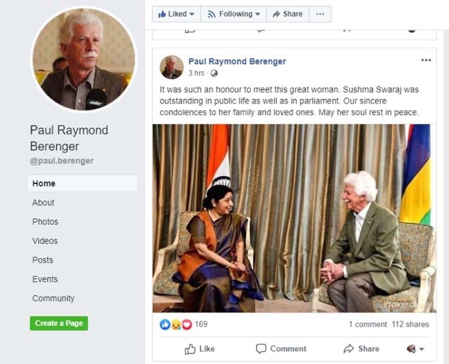 Paul Bérenger, leader du MMM, s’est joint à cet hommage unanime expliquant que «Sushma Swaraj était remarquable dans la vie publique et au Parlement.».