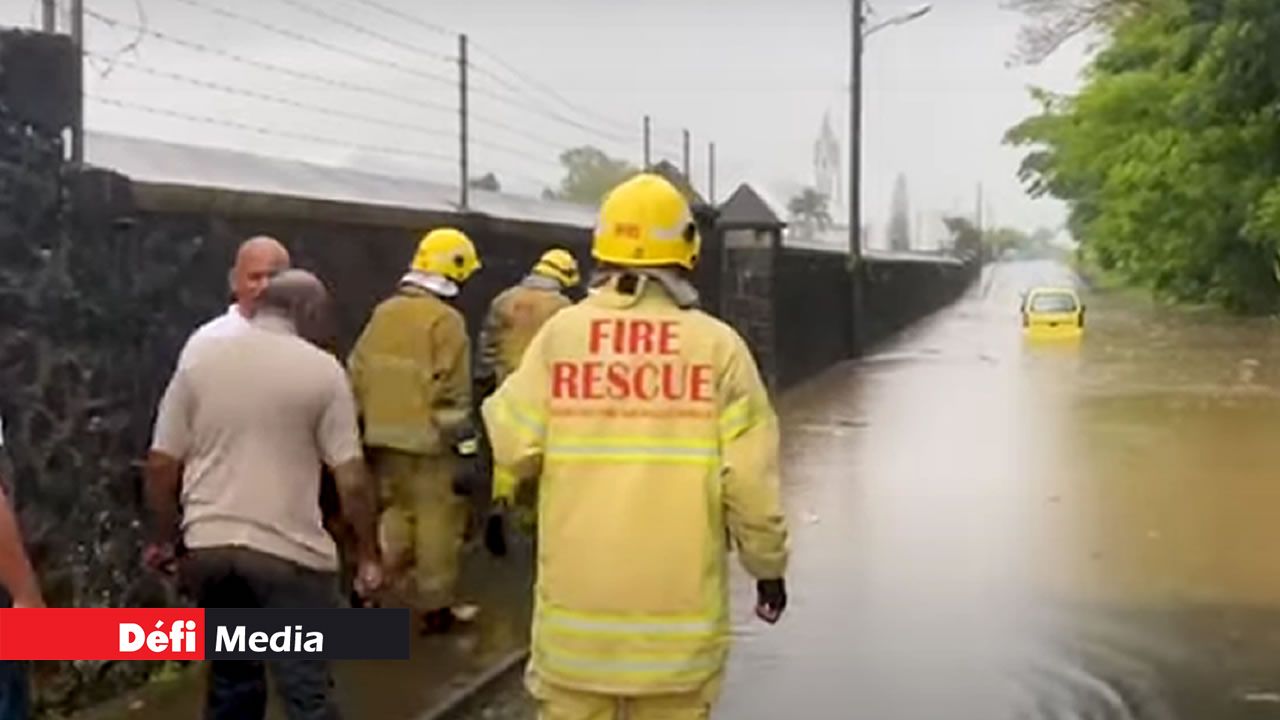 En effet, deux voitures ont été prises au piège par la montée des eaux à St-Jean cet après-midi. Trois personnes ont dû être secourues.