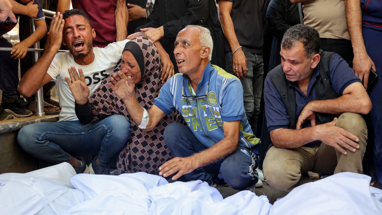 A l'hôpital Al-Shifa, les proches endeuillés pleurent sur les corps des morts.