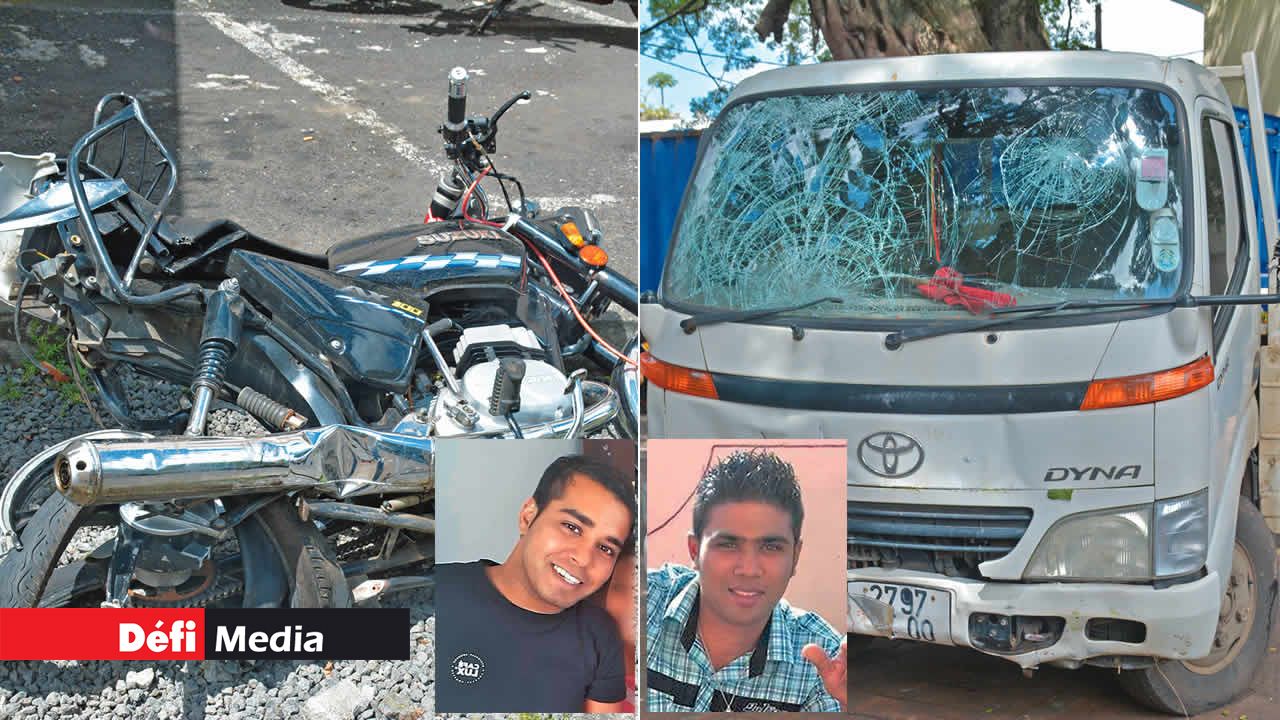 Vendredi, aux alentours de 22 heures, une camionnette percute violemment une moto. Les motocyclistes, notamment, Avinash Kumar (Ashley) Ramdeehul et Soondiron Vaitilingon, tous deux âgés de 27 ans, sont projetés contre un mur. L’impact est d’une rare violence et les deux motocyclistes succombent à leurs blessures.