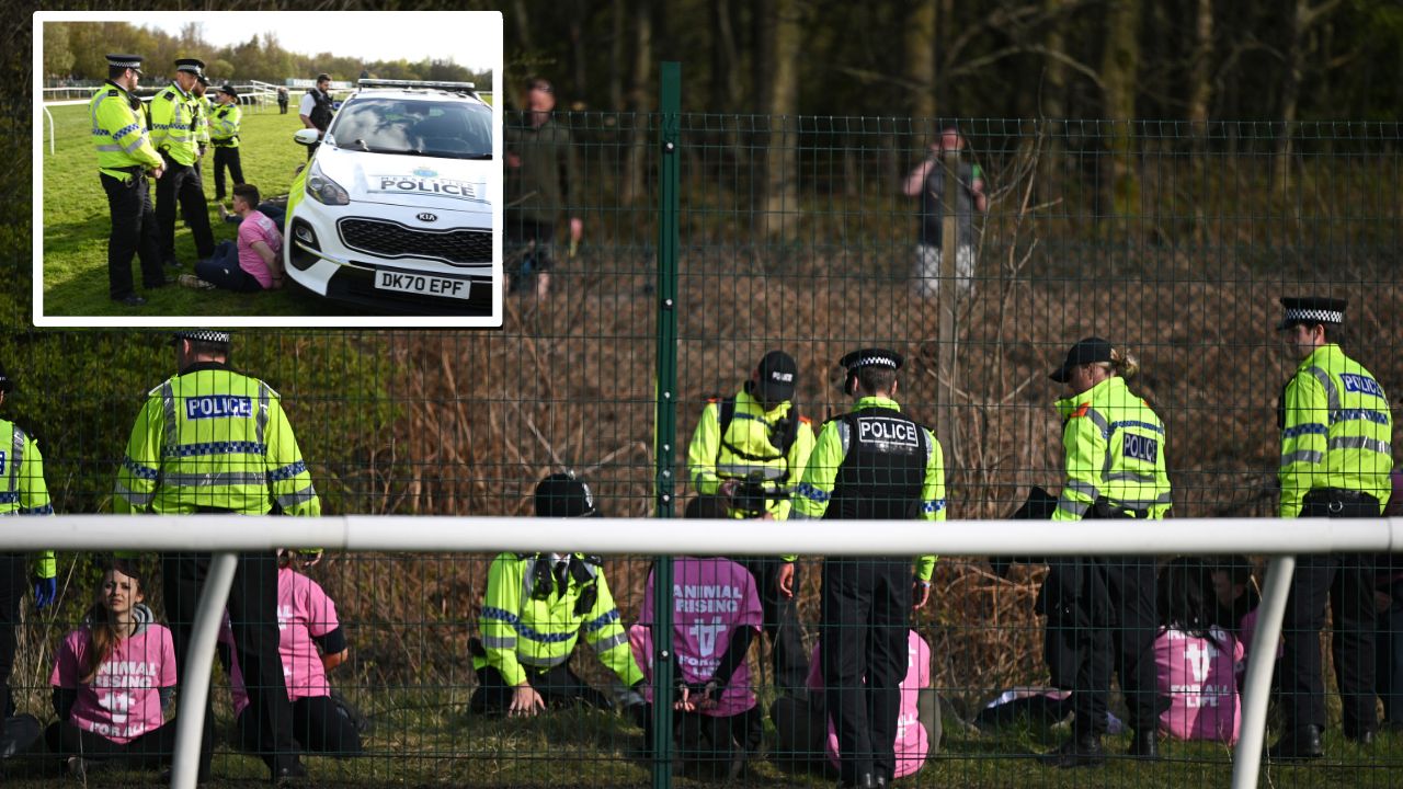 Des dizaines de manifestants du groupe Animal Rising ont tenté de s'introduire dans l'hippodrome pour atteindre la piste et perturber l'événement. La majorité en a été empêchée, mais le départ de la course a été retardée d'un quart d'heure, selon un communiqué de la police du Merseyside samedi soir.
