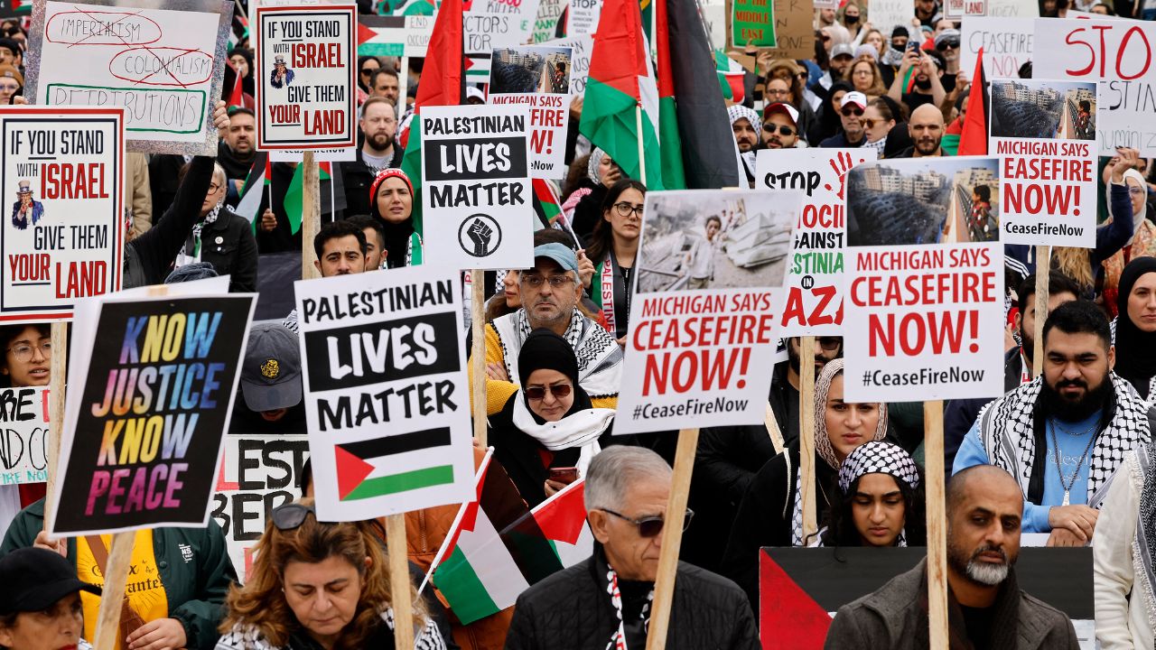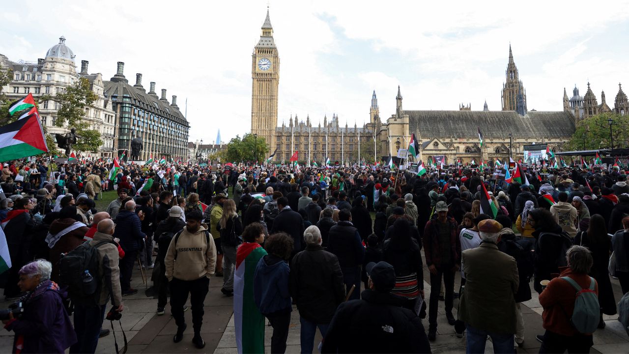 Lors de l'une des plus grandes marches, de grandes foules ont défilé dans le centre de la capitale britannique, Londres, pour demander au gouvernement du Premier ministre Rishi Sunak d'appeler à un cessez-le-feu.