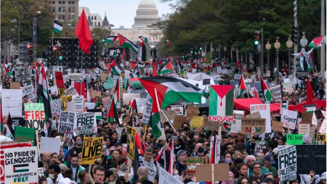 Des dizaines de milliers de personnes se sont rassemblées dans la capitale des États-Unis pour exiger un cessez-le-feu à Gaza, alors que Washington continue de résister aux appels à la fin de la guerre malgré le nombre croissant de morts.