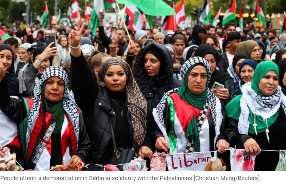 Dans la ville de Hambourg, dans le nord de l'Allemagne, environ 950 personnes ont organisé une manifestation pacifique, agitant de nombreux drapeaux palestiniens et libanais, ou scandant « Arrêtez le génocide ! », selon le décompte de la police rapporté par l'agence de presse DPA.