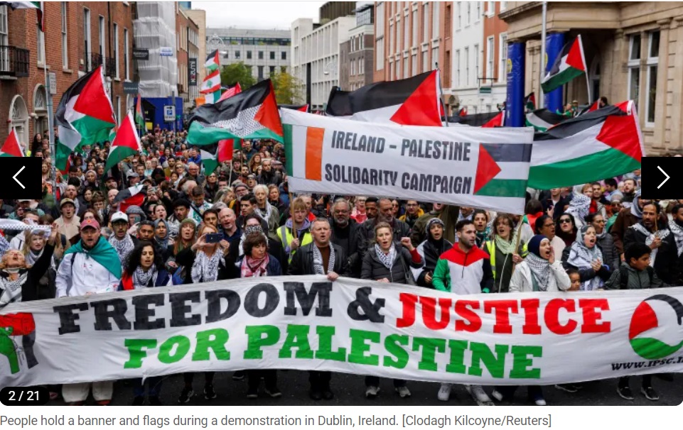 À Dublin, plusieurs centaines de personnes sont descendues dans la rue, agitant des drapeaux palestiniens et scandant : « Cessez-le-feu maintenant ! »