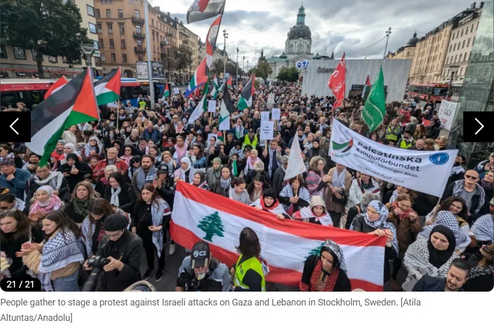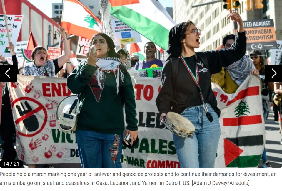 Des dizaines de milliers de personnes se sont rassemblées dans les rues des grandes villes du monde pour condamner les opérations militaires israéliennes à Gaza, à l'approche du premier anniversaire de la guerre dans ce territoire palestinien. Le journal en ligne Al Jazeera a publié des images de ces manifestations pro-palestiniennes sur son site, dimanche. Vous trouverez ci-dessous les images :