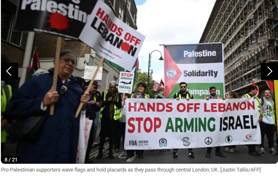 « Malheureusement, malgré toute notre bonne volonté, le gouvernement israélien ne prête aucune attention et continue simplement ses atrocités à Gaza, et désormais aussi au Liban, au Yémen et probablement en Iran », a déclaré Agnes Kory, une manifestante à Londres, à l'agence Reuters.