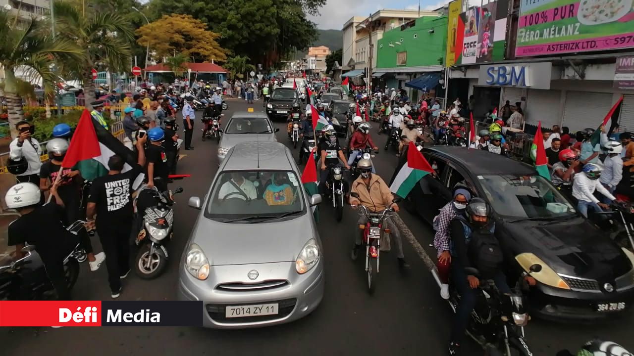 De nombreux véhicules dont des motocyclettes, des autos et des pick-up, ont sillonné plusieurs artères de Port-Louis. Les participants ont brandi le drapeau de la Palestine. L’ambiance était bon enfant.