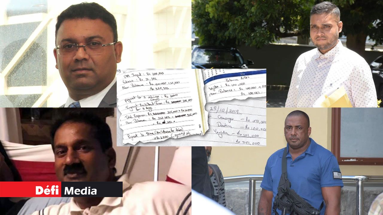 Sur une autre page, il était question de trois kilomètres d’oriflammes. À la date du 24 août 2019 de l’agenda, on pouvait lire : « PM input – Rs 300 000. Payment for two containers. Kaya Rs 20 000. » À la date du 25 octobre 2019, il était écrit : « PM – Rs 1 M, Mrs D – Rs 150 000 et Mr Yogida – Rs 300 000. » À la date du 13 novembre 2019, mention est faite de : « Total amount due : Rs 186 000. Kaya – Rs 24 000. »
