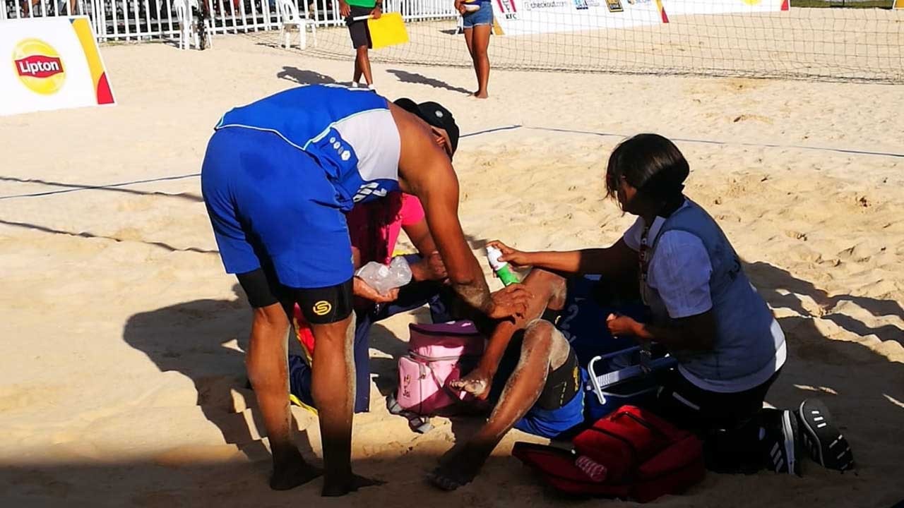 Un peu plus tôt, le volleyeur mauricien, Akash Doobraz, s’était blessé lors du tournoi qui se déroule, ce mardi 23 juillet au Mont Choisy Beach Arena.