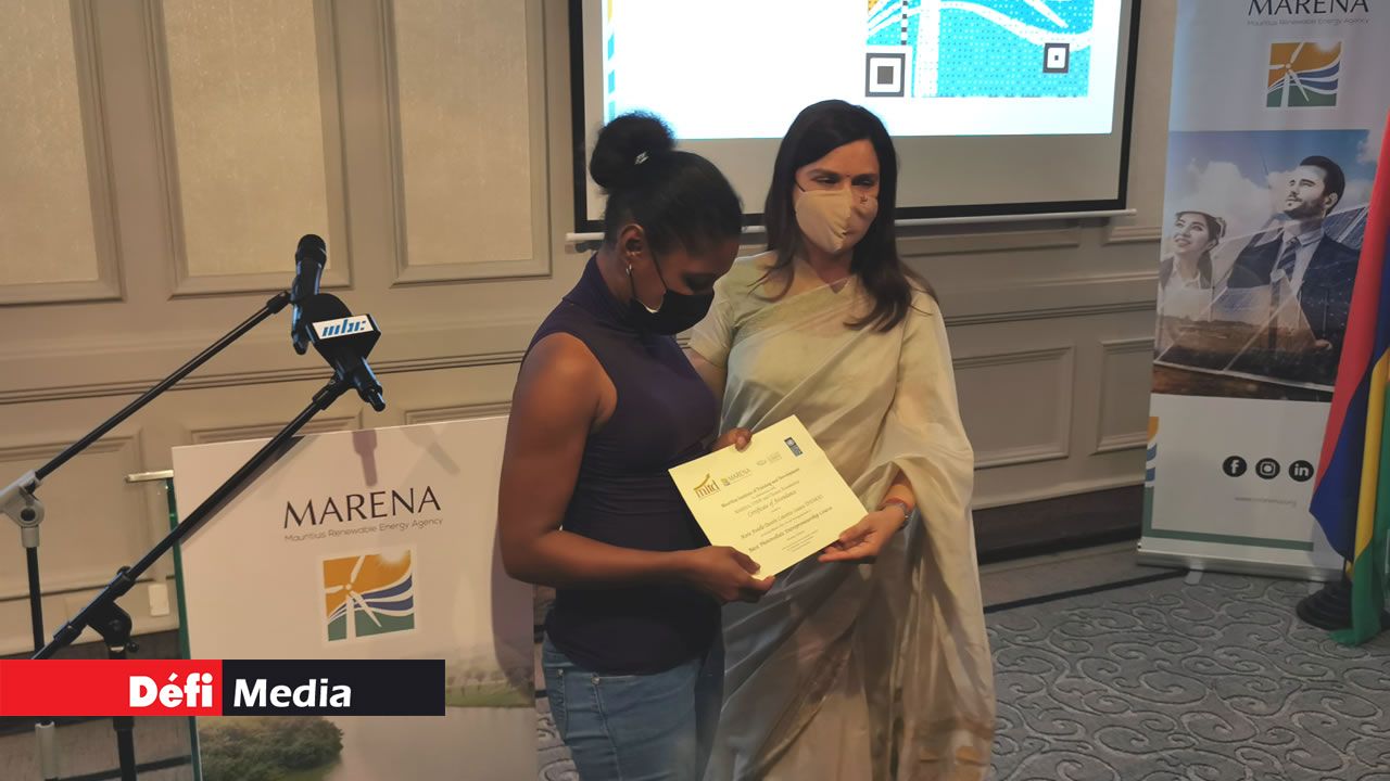 Kobita Jugnauth a présidé une remise de certificats aux personnes qui ont suivi des cours en entrepreneuriat et sur les bases de la photovoltaïque, dispensés par la Mauritius Renewable Energy Agency (MARENA). C'était vendredi après-midi, au Sirius, à l’hôtel Labourdonnais.