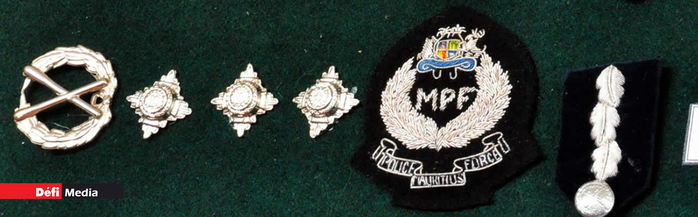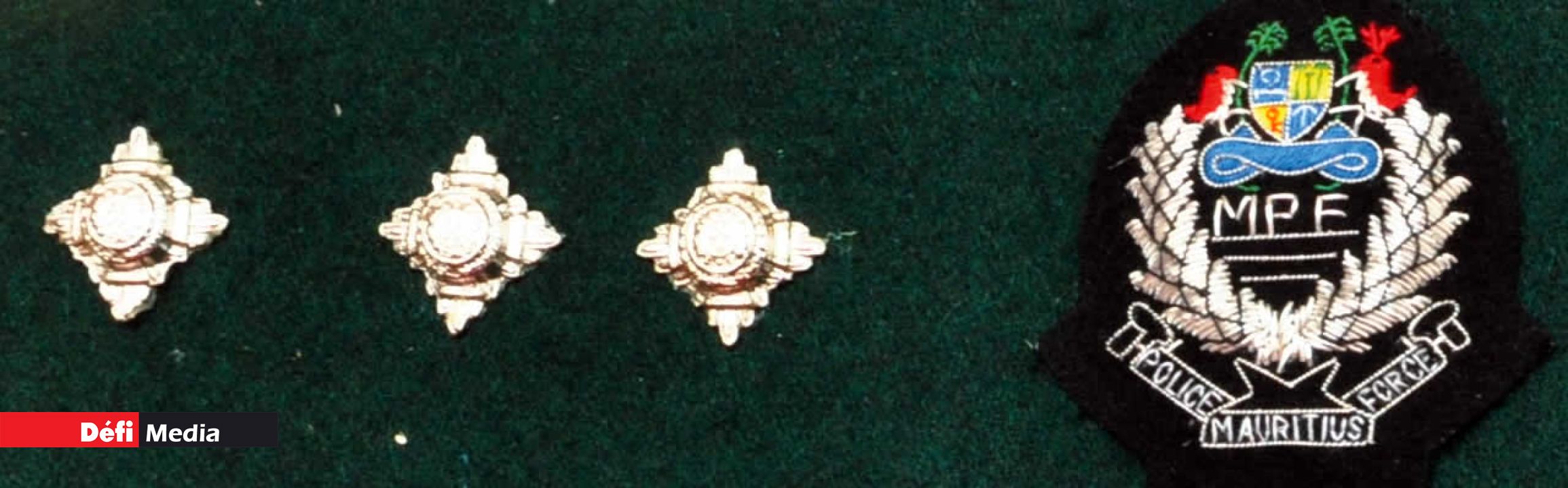 - Commissaire de Police. Un crossed tipstaves entouré d’une couronne + un Mauritius Coat of Arms et une étoile + un revers (lapels)