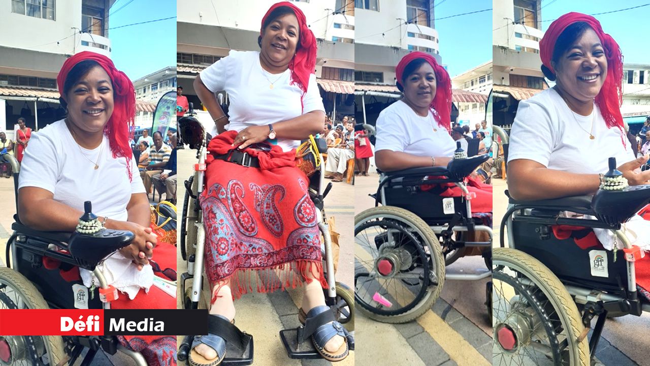 Mercredi dernier, alors que Radio Plus anime plusieurs émissions dans le sud, plus précisément à Tyack/Rivière-des-Anguilles, ils étaient nombreux à avoir fait le déplacement. Le public très réceptif n’a pas manqué de danser et de chanter avec les animateurs. Soudain, dans la foule, une femme au foulard rouge nous tape dans l’œil. Assise, elle a du mal à se tenir en place, elle chante et frappe des mains. Quand elle ne sourit pas, elle rit aux éclats, les yeux fermés et le visage illuminé. Nous nous approchons d’elle. C’est là que nous comprenons qu’elle ne se lève pas parce qu’elle est dans un fauteuil roulant.