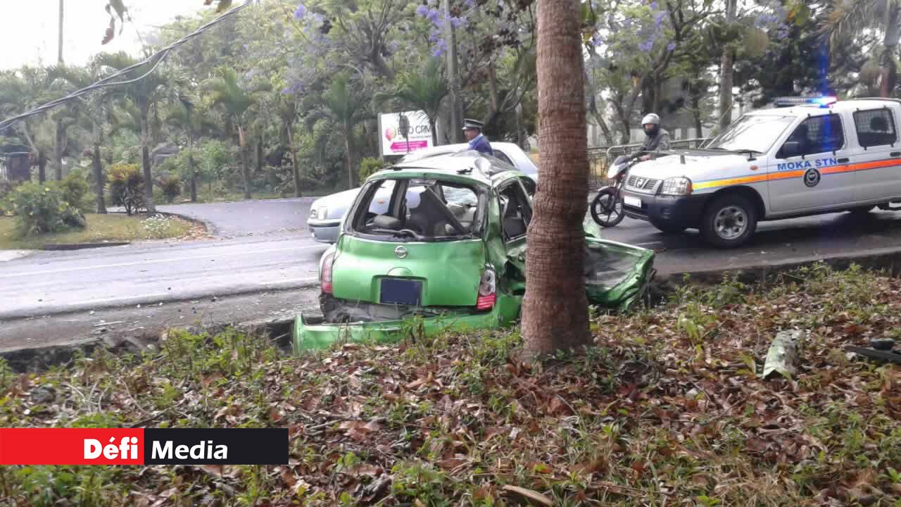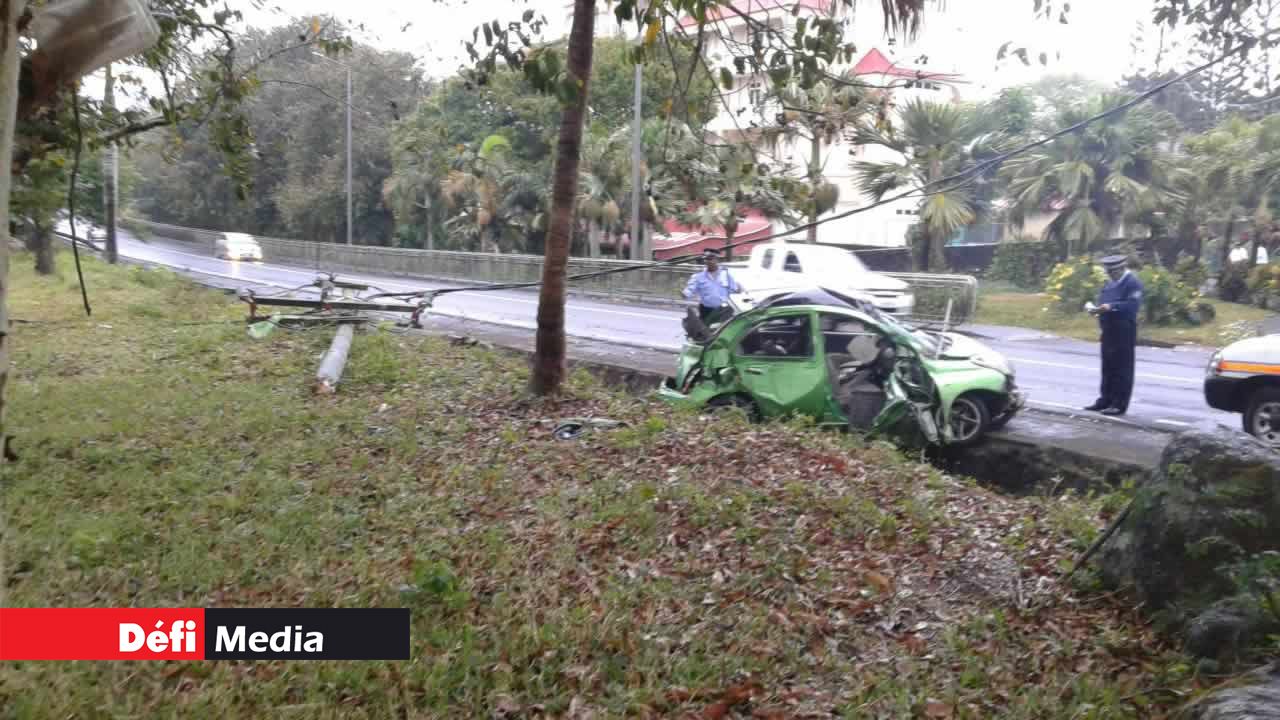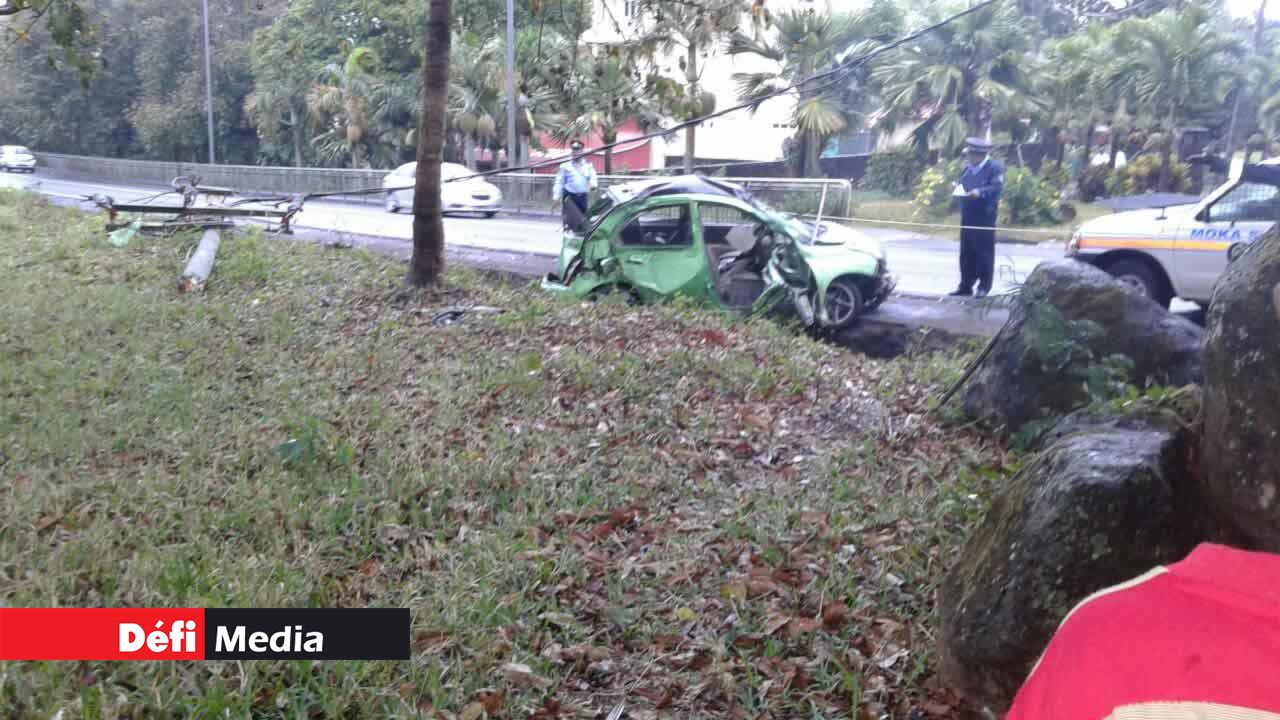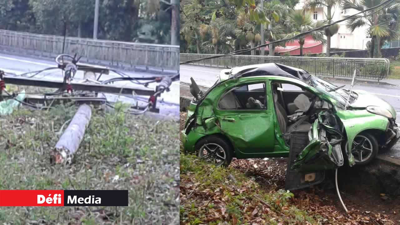 Cet accident de la route s’est produit ce dimanche matin 13 novembre à Moka, non loin du collège MGI (Mahatma Gandhi Institute). Une voiture a subi de gros dégâts matériels après avoir percuté un pylône du Central Electricity Board (CEB).