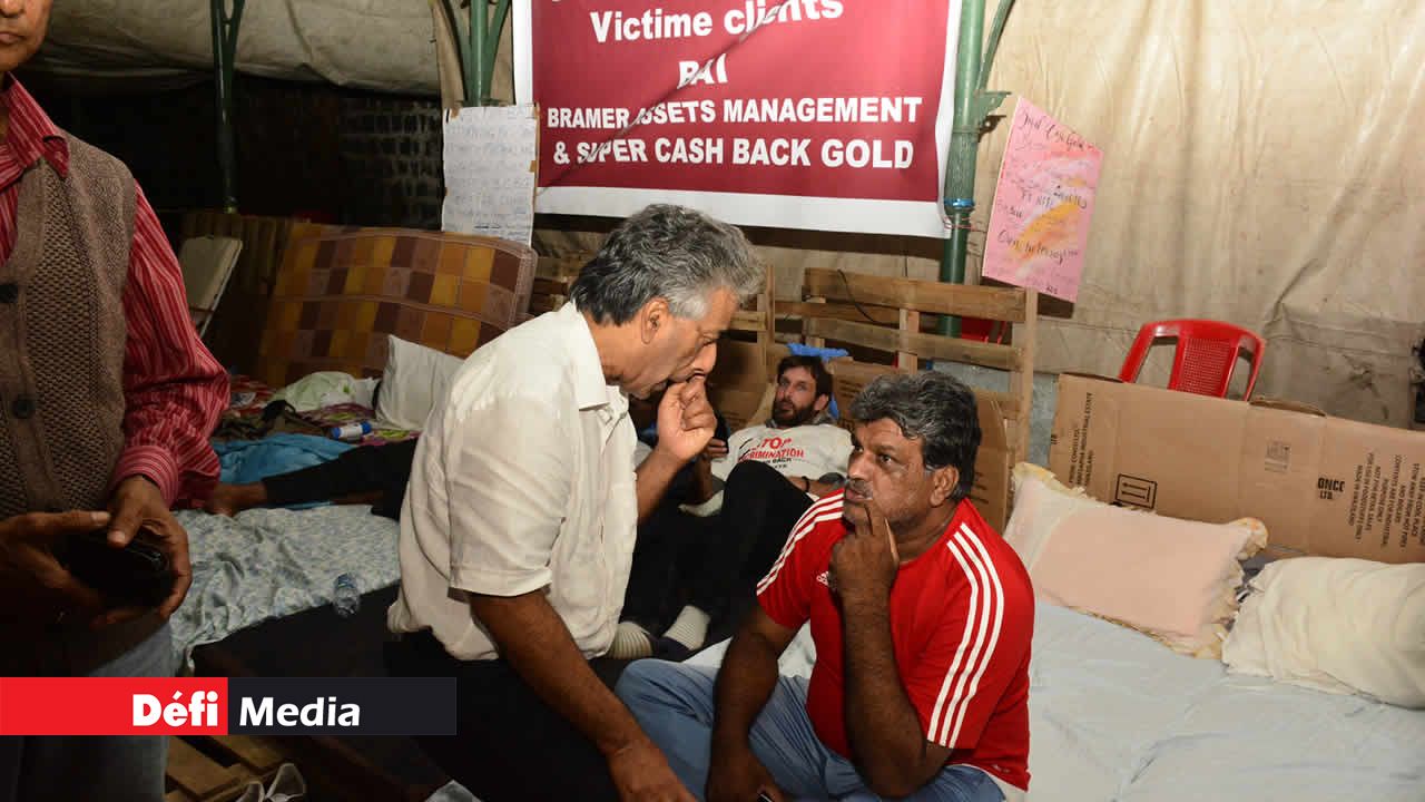 Mercredi, trois grévistes ont été délégués pour rencontrer le ministre Sesungkur pour discuter des modalités de remboursement. Toutefois, Salim Muthy affirme que la grève ne s’arrêtera pas pour autant. « Il faut que le ministre donne la garantie que les détenteurs des polices du Super Cash Back Gold et de Bramer Assets Management seront payés.» Les paiements seront effectués à partir de ce vendredi, a promis le ministre.