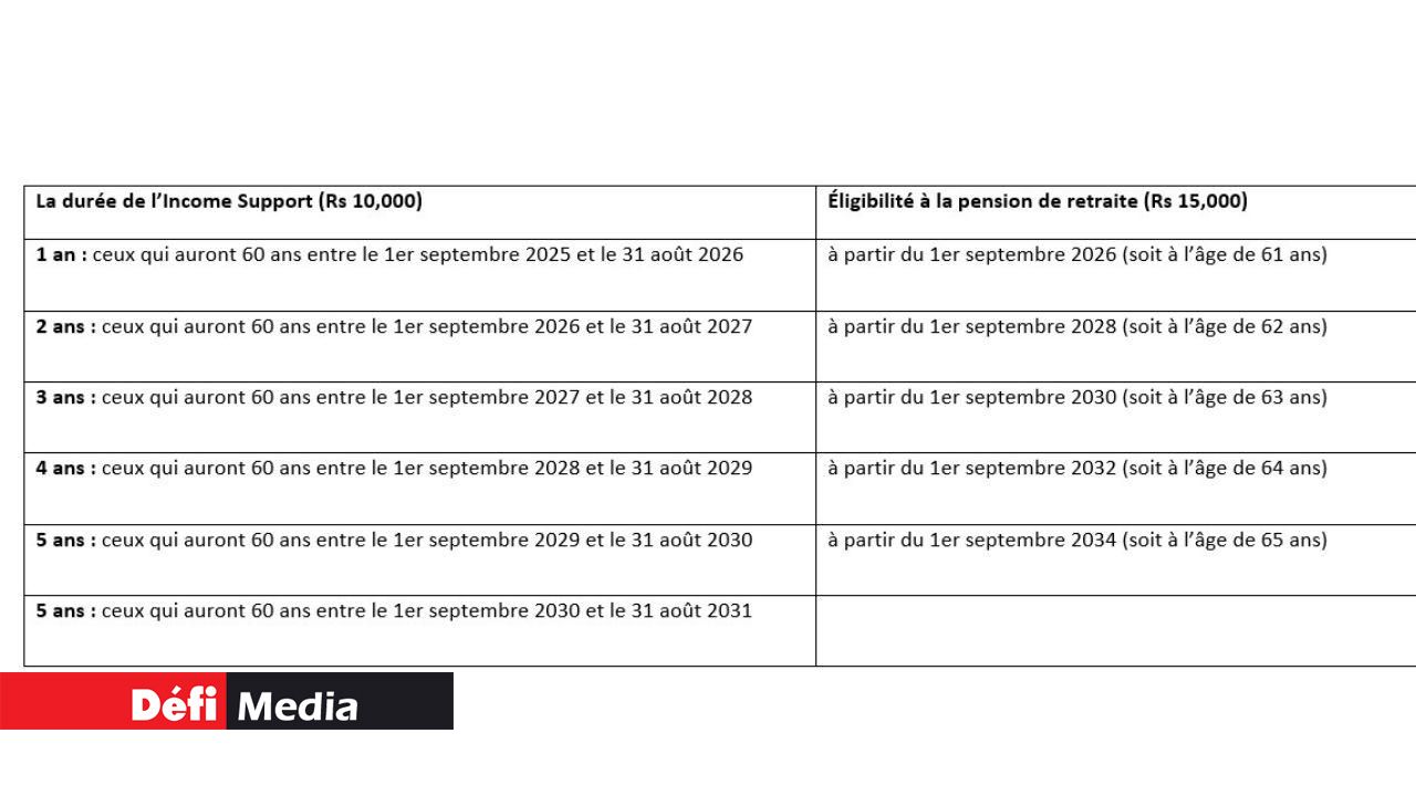 Le 5 juin dernier, le Premier ministre, Dr Navin Ramgoolam, avait annoncé que l’âge d’éligibilité à la pension de retraite sera progressivement repoussé à 65 ans, et ce, sur une période de cinq ans. Cette mesure budgétaire entrera en vigueur à partir du 1er septembre 2025.