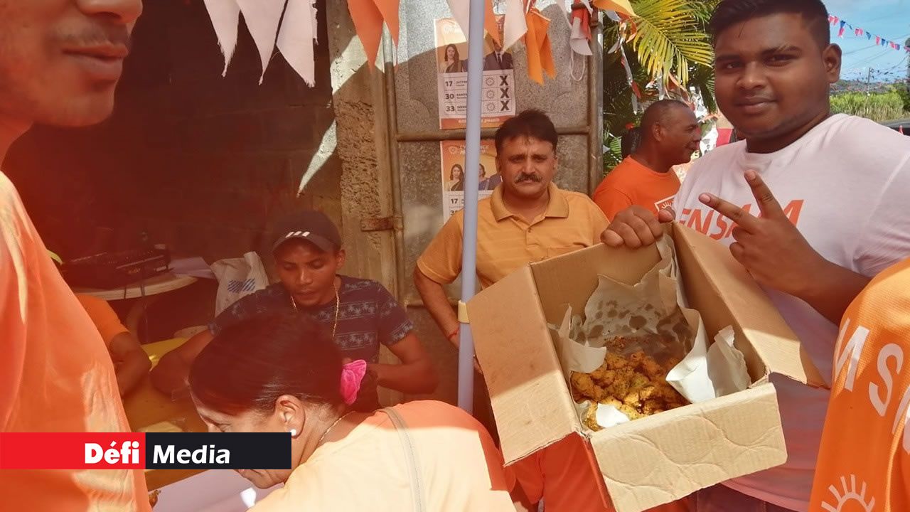 Des activitistes de l’Alliance Morisien dans la circonscription no 11 (Vieux Grand-Port/Rose-Belle) ont profité d’un petit moment de répit pour reprendre des forces, ce jeudi après-midi, 7 novembre. Au menu, des «gato piment» distribués à tous ceux qui se sont mobilisés sur le terrain depuis tôt ce matin.