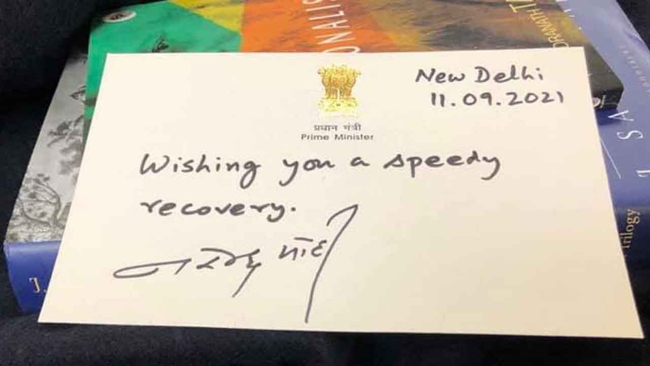 Le Premier ministre de l'Inde, Narendra Modi, souhaite un prompt rétablissement à Navin Ramgoolam, leader du Parti travailliste et ancien Premier ministre de Maurice. Ce dernier a reçu une carte et un bouquet de fleurs de la part de Narendra Modi dans sa chambre à l''All Indian Institute of Medical Sciences, à New Delhi, Inde, samedi.