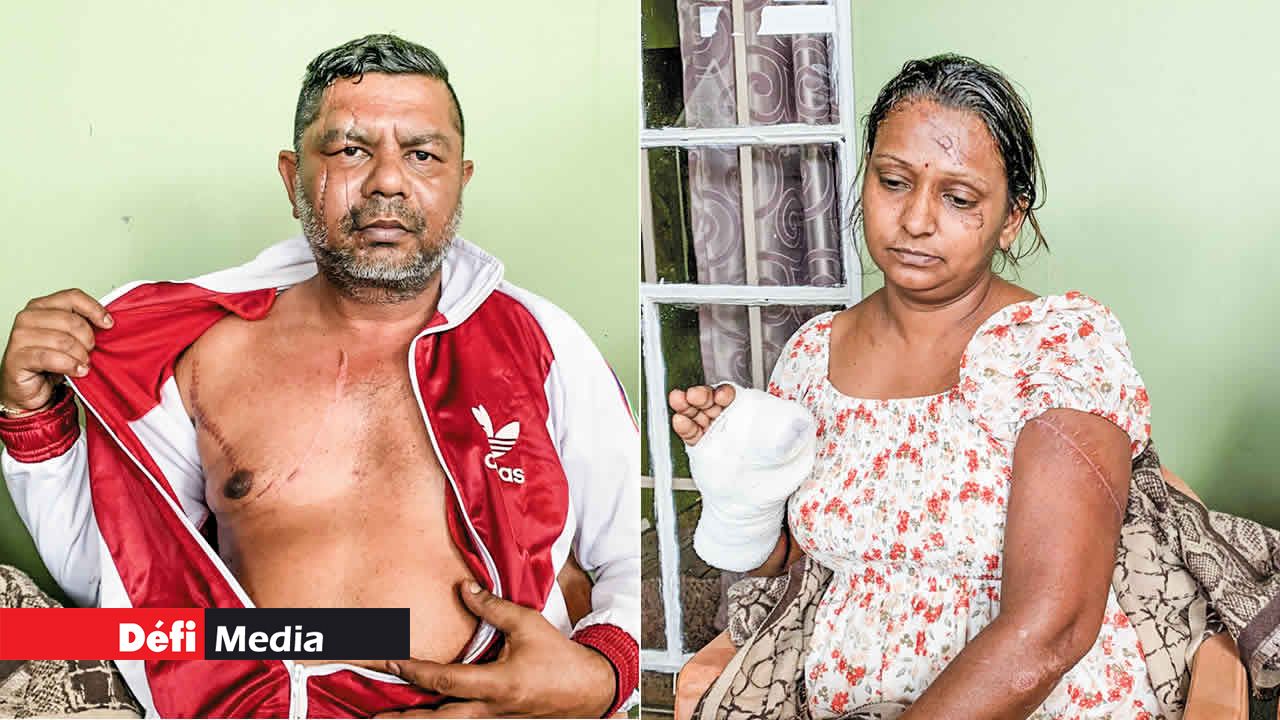 Ils disent avoir vu la mort de près. Sashi et Babita Jhingoor, 46 ans tous deux, étaient assis dans la cour de leur maison à Triolet, le samedi 17 août 2024, lorsqu’ils ont été brutalement agressés par une bande d’individus. « Comme d’habitude, après le travail, nous étions assis sous notre terrasse. Tout à coup, cinq personnes armées de sabres, de gourdins, de marteaux et de bâtons sont arrivées et ont commencé à agresser mon mari », raconte Babita, encore sous le choc de cette nuit traumatisante.