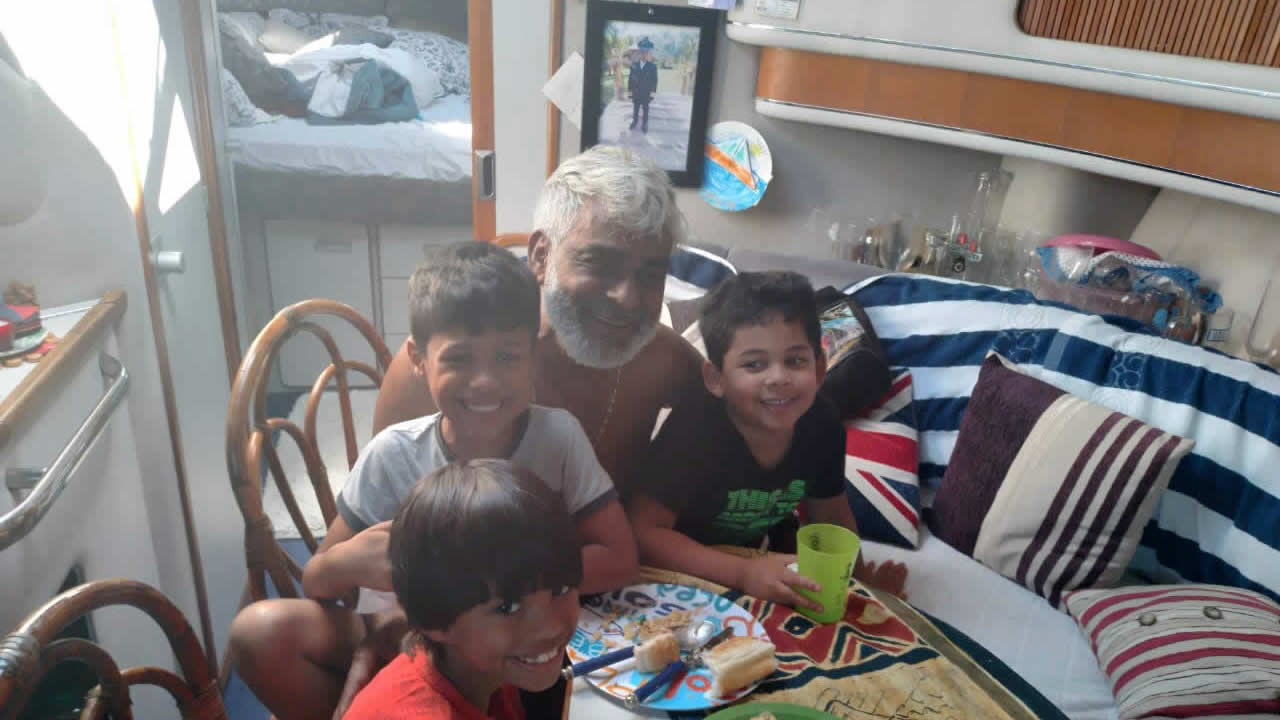 Aujourd’hui, Sunil est broker international. Il organise des expéditions, des croisières, il conseille, il vend. Mais il ne possède ni bureau ni villa de luxe. Son bureau, c’est la cabine de son yacht. Son fauteuil, la rambarde arrière. Son frigo est plein, son four fonctionne grâce à un générateur, son micro-ondes aussi. Quand il est au quai, il branche l’électricité grâce à un transformateur. Il a même un petit climatiseur pour les nuits étouffantes. « Je vis comme tout le monde, mais avec les étoiles en plus. »