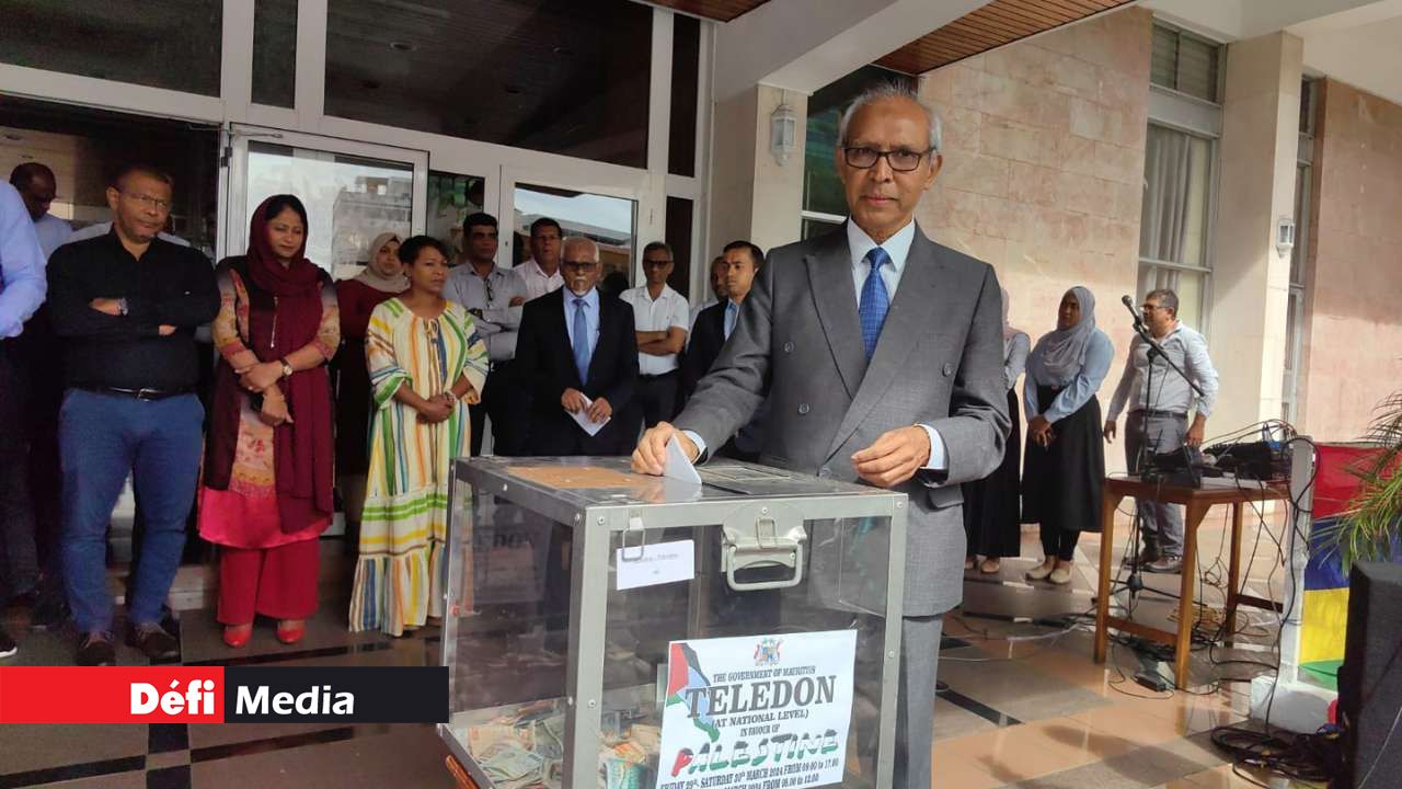 Coup d’envoi du télédon en faveur du peuple palestinien à la marie de Port-Louis par le vice-Premier ministre Anwar Husnoo, ce vendredi matin, 29 mars.