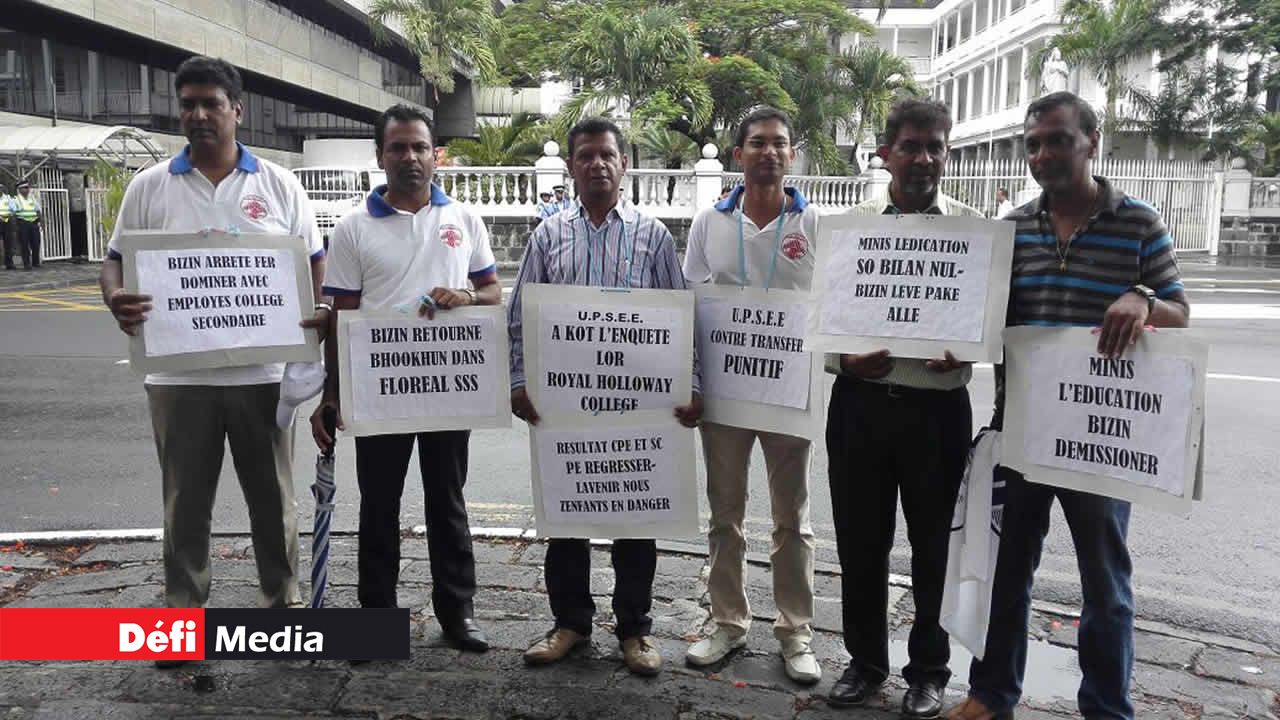 Les membres de l’Union of Private Secondary Education Employees (UPSEE) montent au créneau. C’est leur troisième manifestation en quelques semaines pour dénoncer le transfert qu’ils qualifient de « punitif » de Roshan Bookhun. Cet enseignant d’un collège d’état a été muté dans un établissement à St-Aubin.