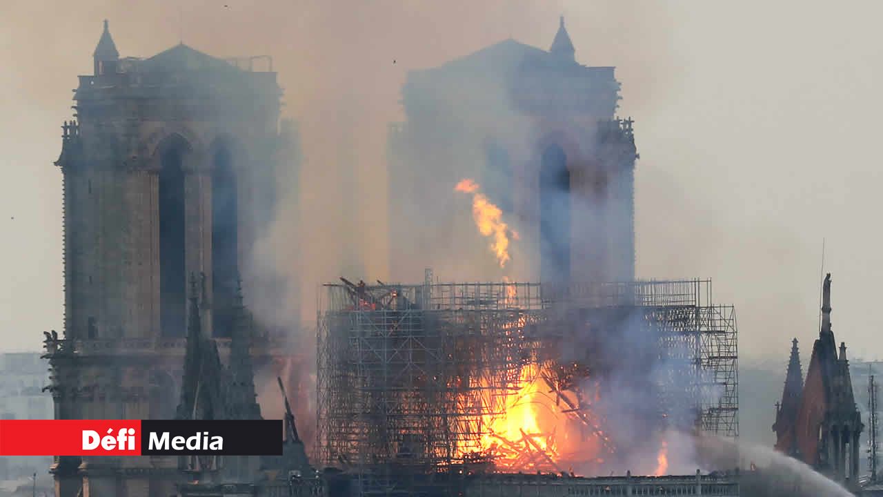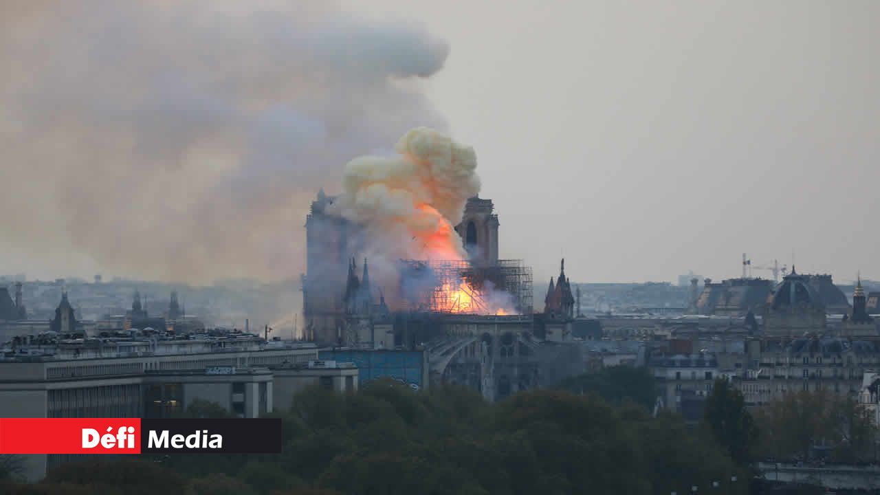 Une épaisse fumée aux teintes jaunâtres se dégageait de l'édifice, dévoré par les flammes, des images impressionnantes que diffusaient en direct télévisions et réseaux sociaux en France.
