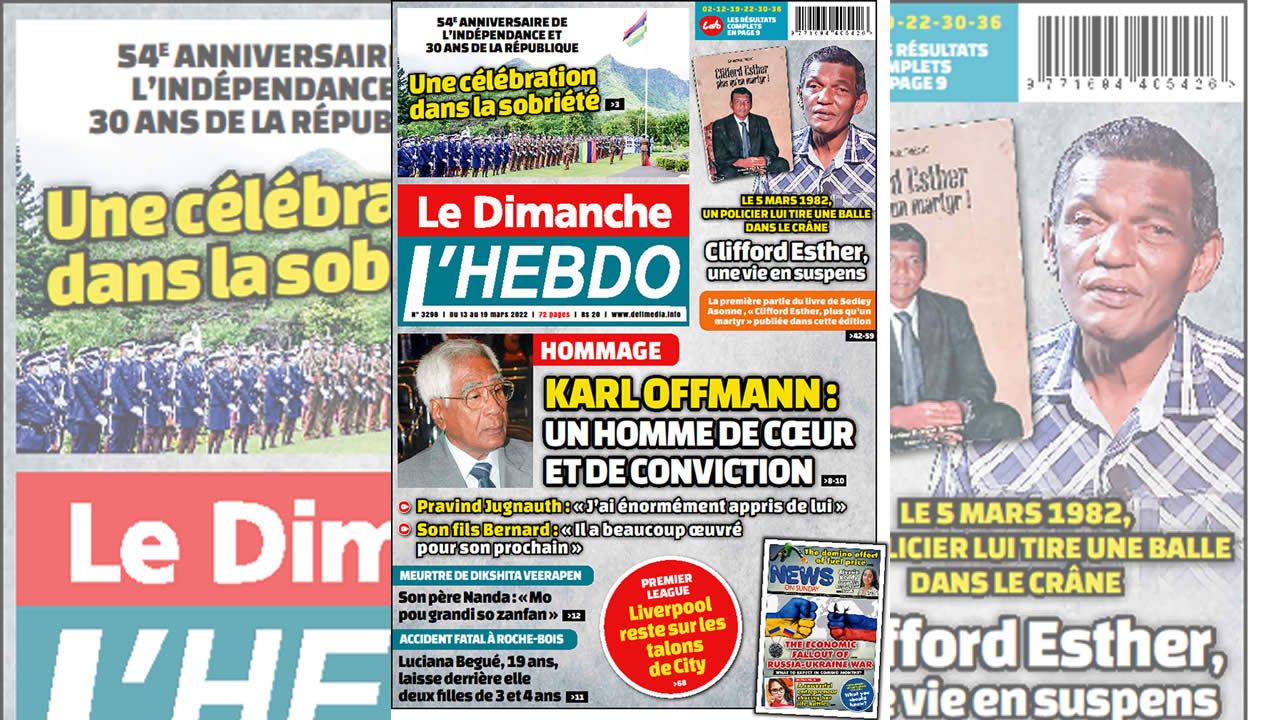 ? Voici la Une de Le Dimanche/L'Hebdo. Le journal est en vente à Rs 20 l'exemplaire aux endroits habituels (supermarchés, boutiques, tabagies, superettes). Bonne lecture !