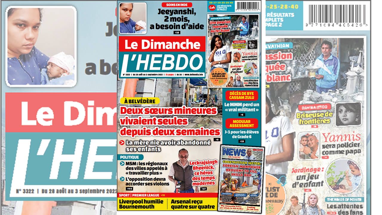 ? Voici la Une de Le Dimanche/L'Hebdo. Le journal est en vente à Rs 20 l'exemplaire aux endroits habituels (supermarchés, boutiques, tabagies, superettes). Bonne lecture !