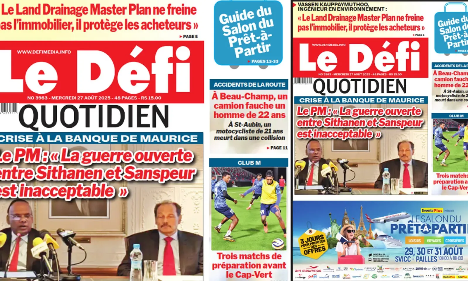 ? Voici la Une du Défi Quotidien. Le journal est en vente à Rs 15 l'exemplaire aux endroits habituels (supermarchés, boutiques, tabagies, superettes). Bonne lecture !