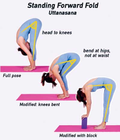 The Balasana is often performed as a resting position, and is incorporated into the asana sequences used in different styles of yoga. Aside from its calming and meditative aspects, the Balasana is also good for relieving tension in the neck and shoulders – the parts of our body where stress manifests itself physically. To do the Child’s pose, knees and fold your legs underneath you, resting the buttocks on the soles of your feet. Bend your body forward and lower your forehead onto the floor. You can rest your arms by your side or extend them with your palms touching the floor.[[{"type":"media","view_mode":"media_large","fid":"16512","attributes":{"class":"media-image wp-image-27898 alignleft","typeof":"foaf:Image","style":"","width":"200","height":"232","alt":"Standing-Forward-Bend-or-Uttanasana"}}]]Standing Forward Bend or Uttanasana